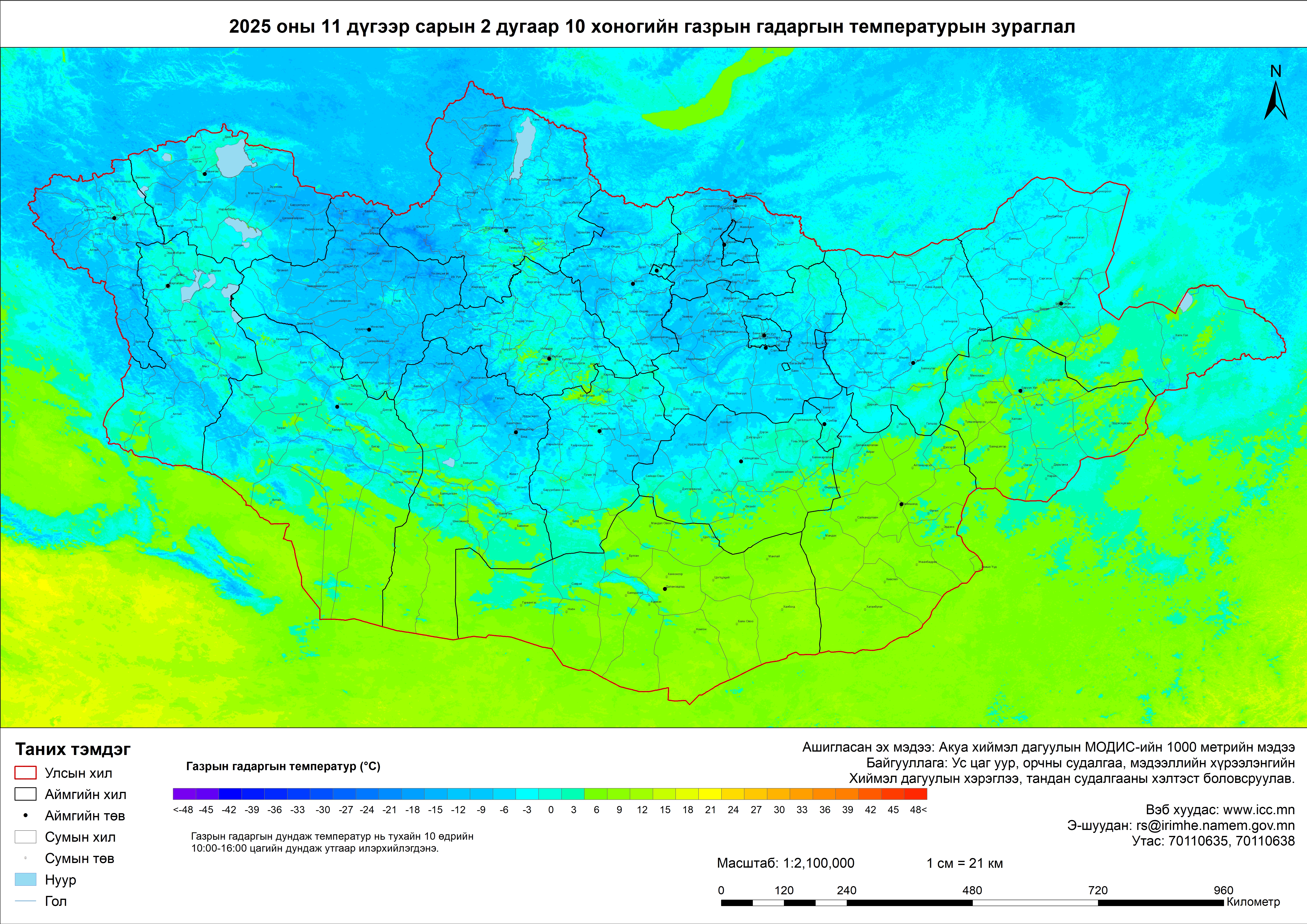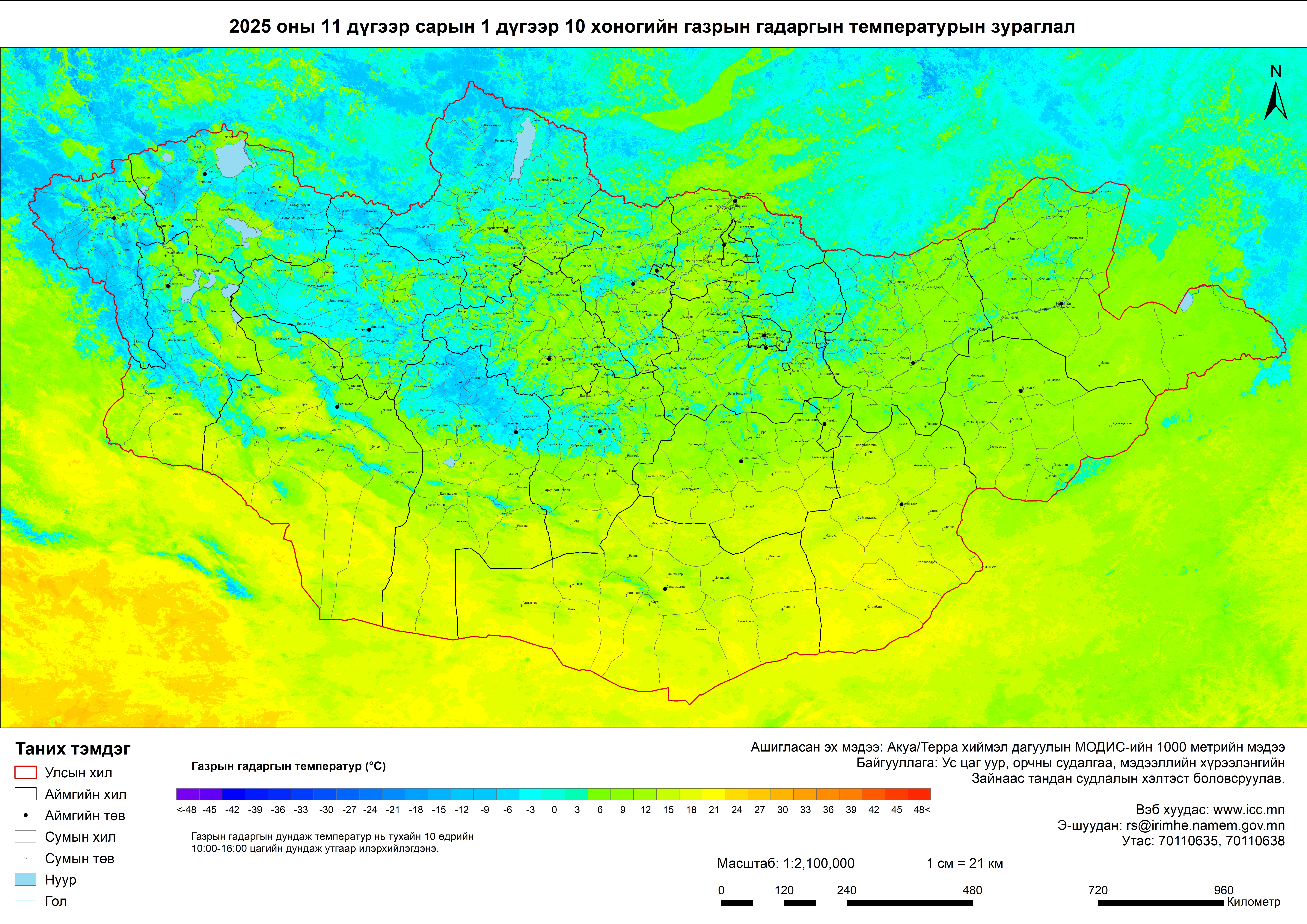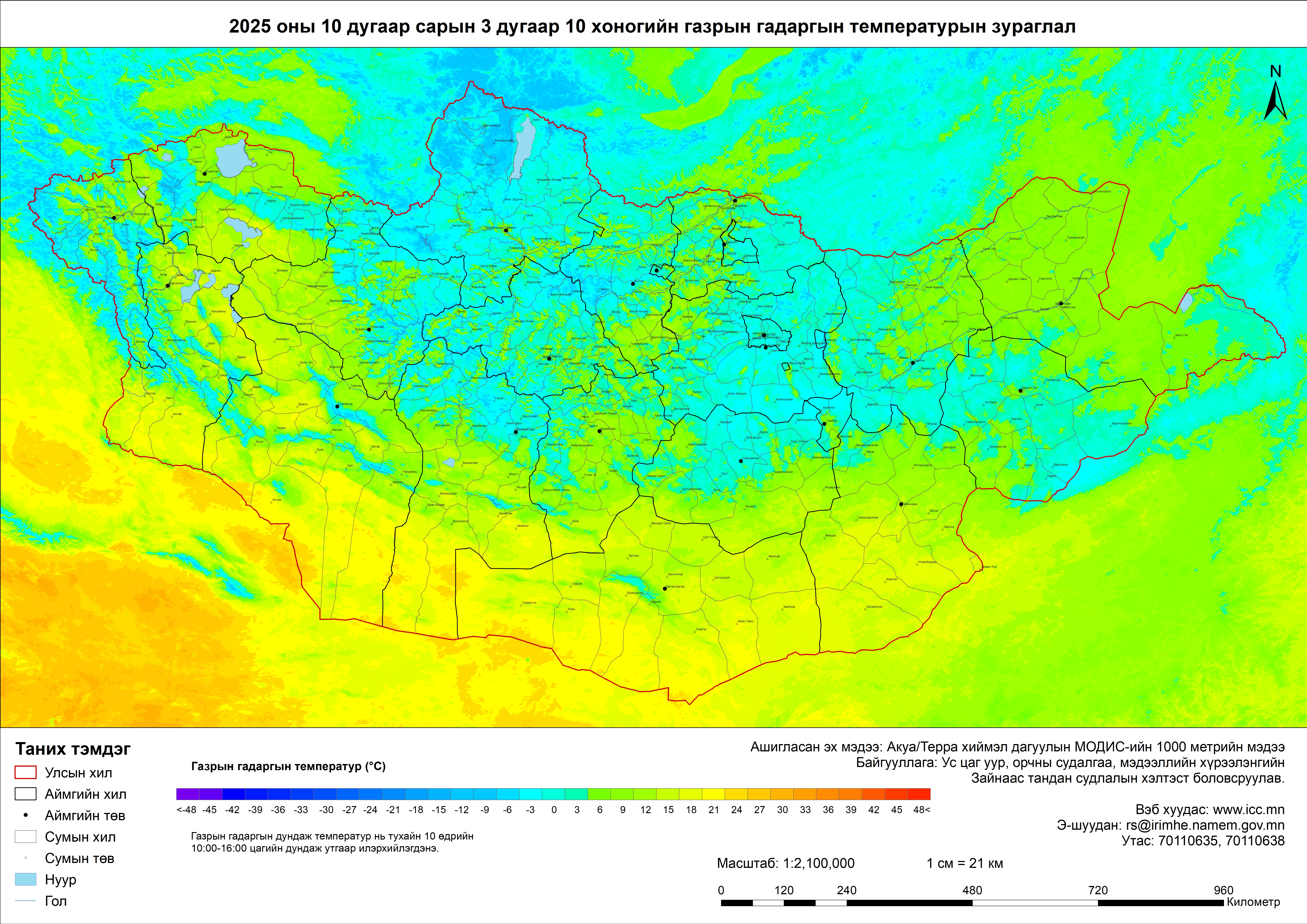 MODIS бүтээгдэхүүн-Газрын гадаргын температур